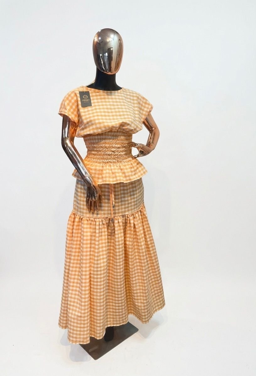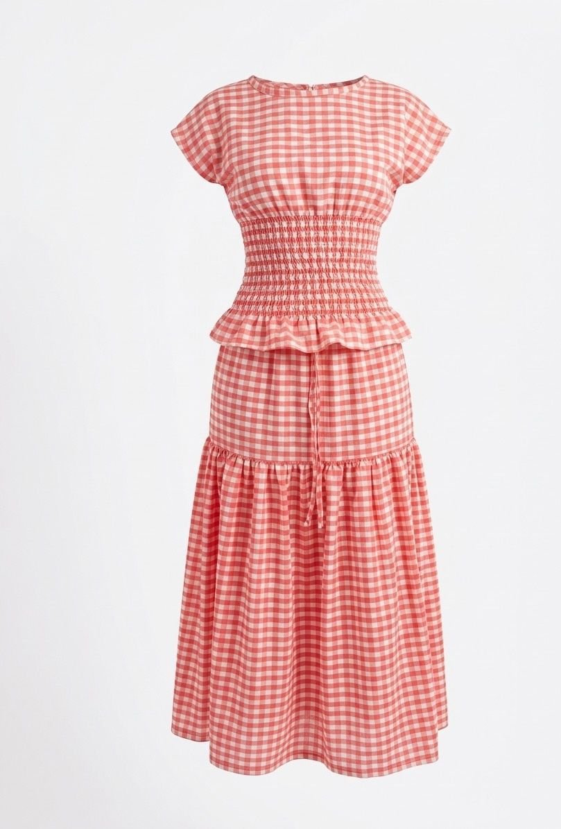 Effortlessly feminine, this pink gingham midi dress features a flattering smocked waist, soft cap sleeves, and a flowy tiered skirt. Light, breezy, and perfect for everyday elegance with a playful touch.